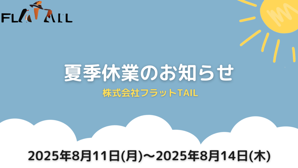 平素は格別のご高配を賜り、誠にありがとうございます。 誠に勝手ながら、弊社は2026年4月1日より社名を下記のとおり変更いたします。 【旧】フラットTAIL 【新】ENERISE 皆様には大変ご不便をおかけいたしますが、 […]